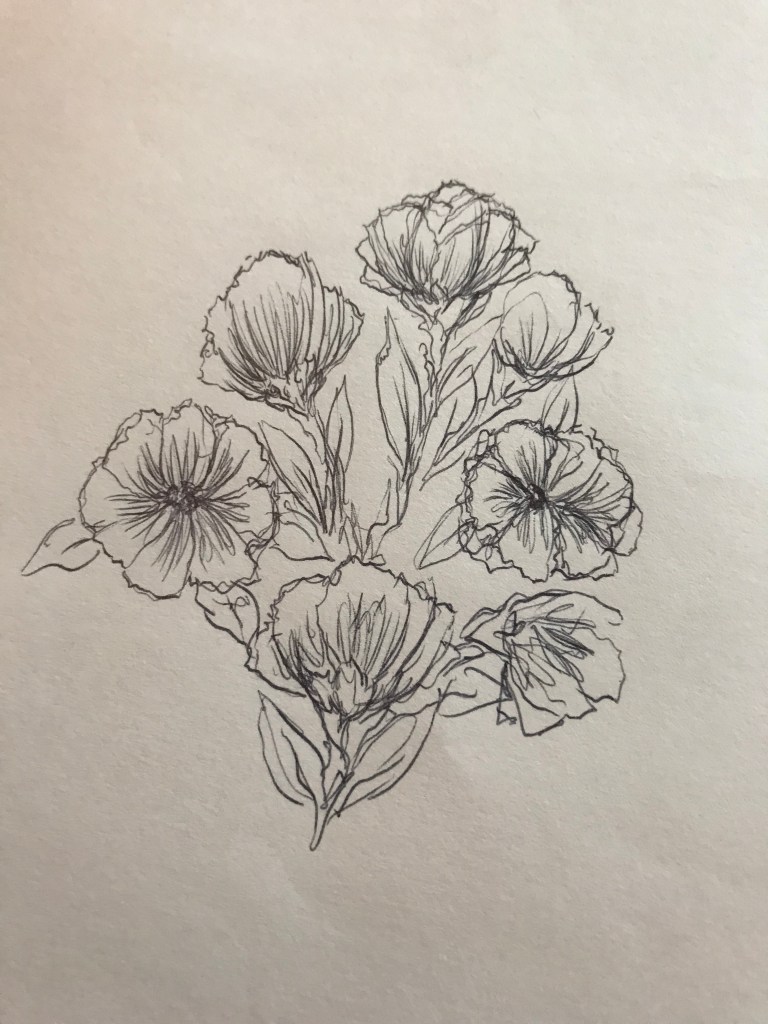 I called my father and doodled some wildflowers. Delicate little petals upon stems I can smell, sage-like from the hides of the earth’s husk.
